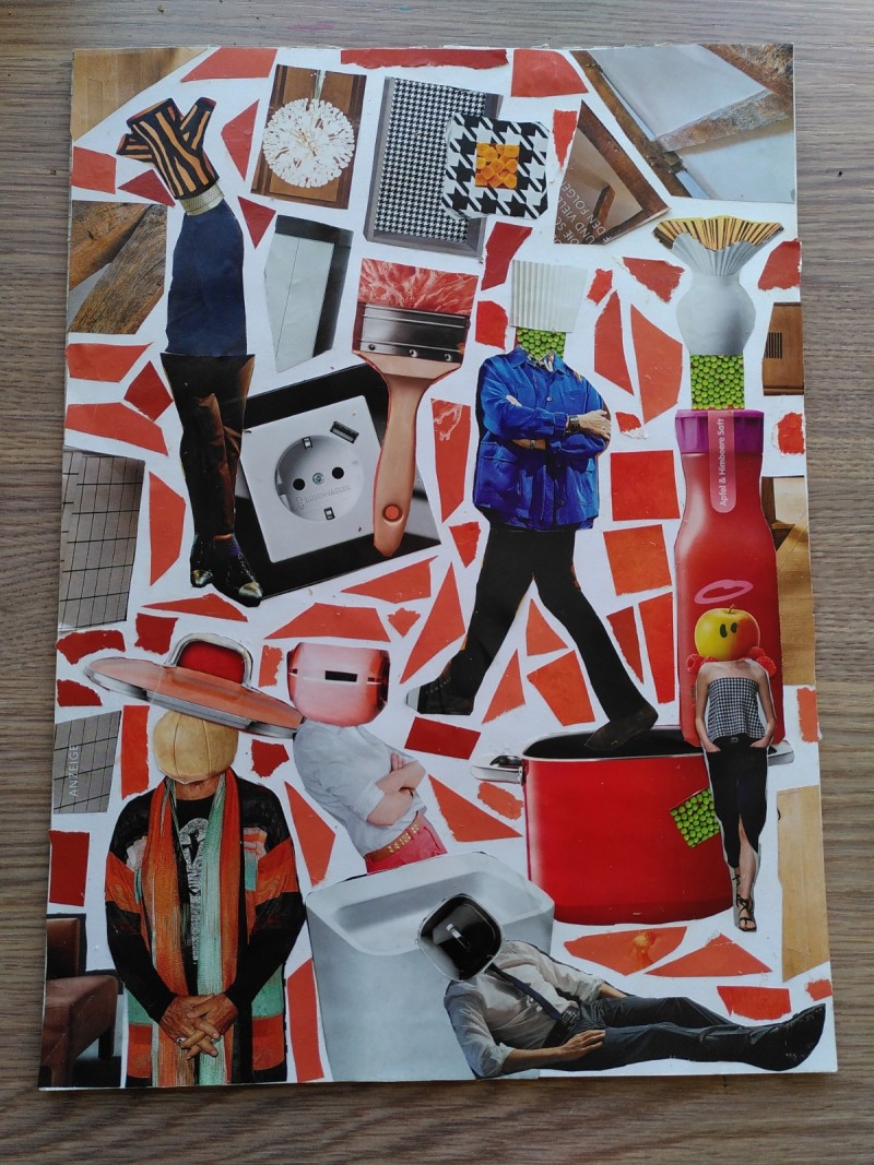 - Je kunt net zo lang met de stukjes papier schuiven tot het er goed uit ziet en dan plak je ze vast.