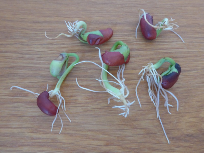 - Geef de boon iedere dag water, zodat ie tussen twee natte watjes ligt. De kleur van de boon trekt zelfs in het watje!