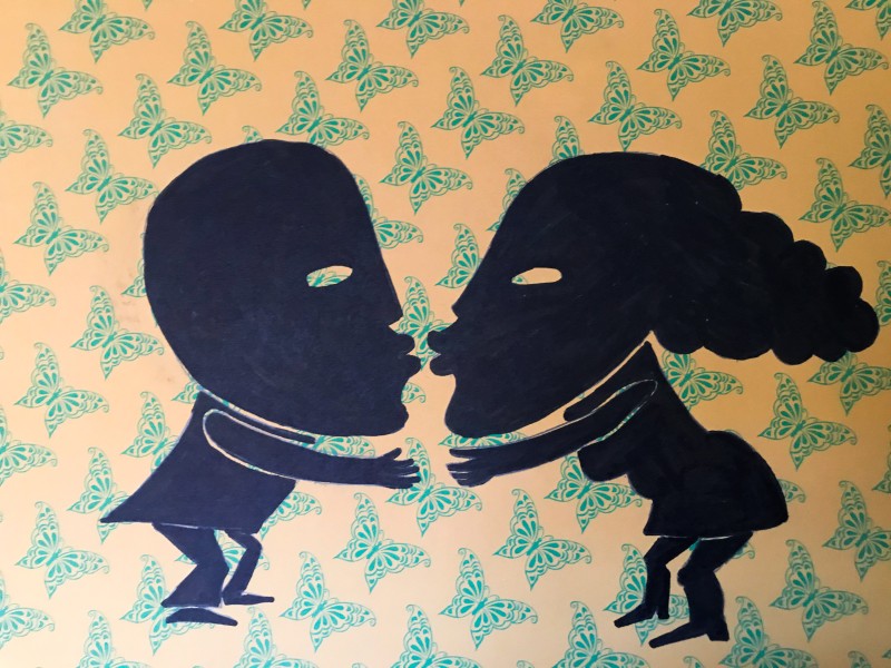 - Vul de vlakken tussen de contouren in met de dikke zwarte stift.