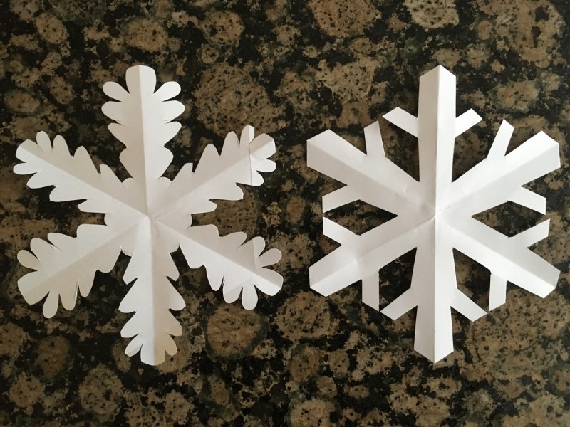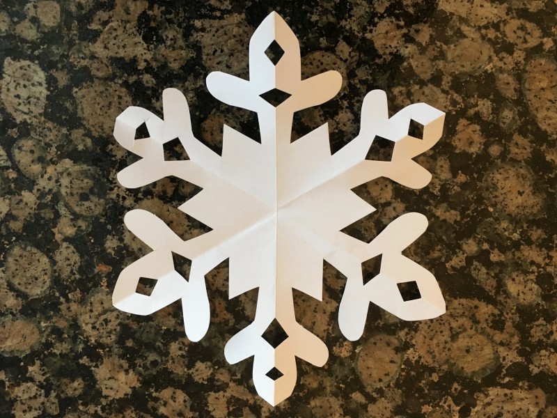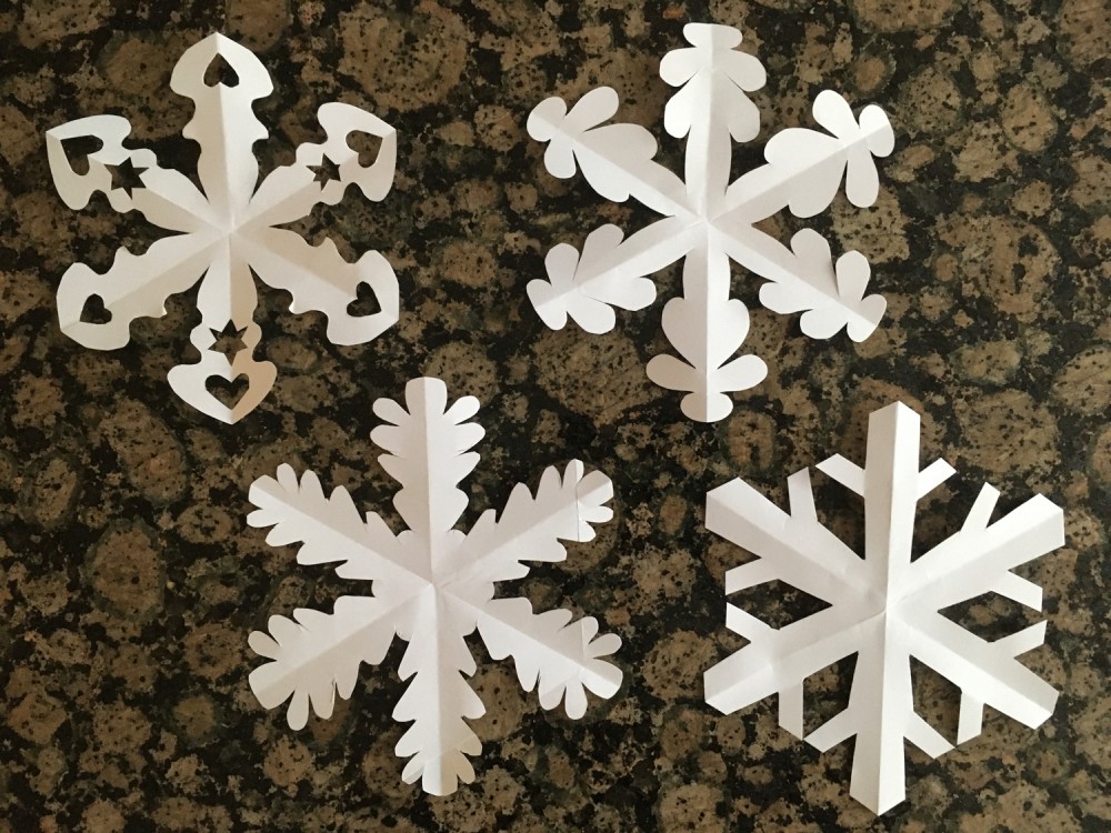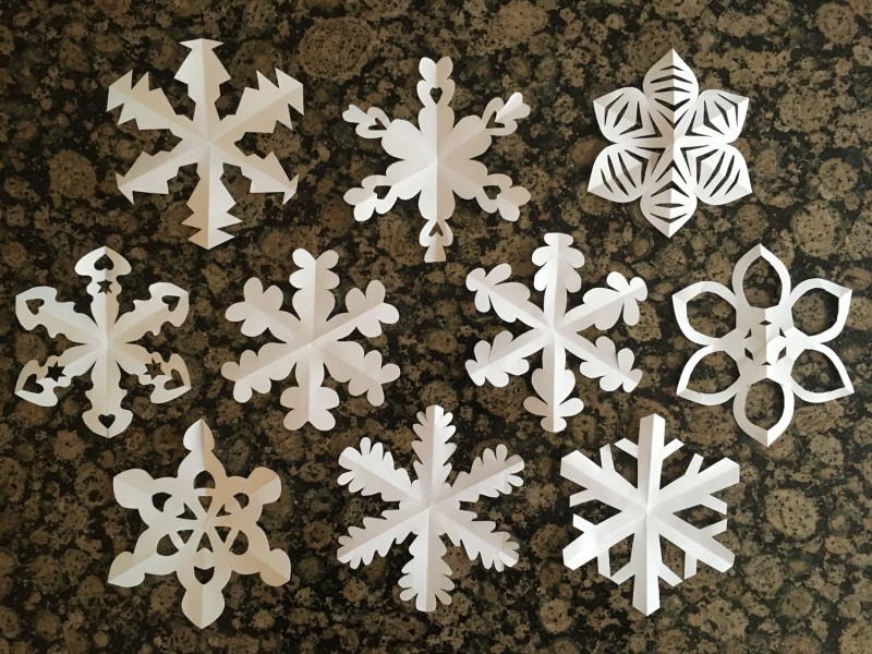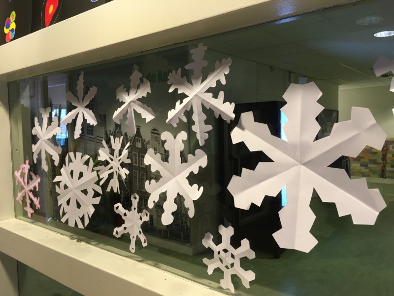 Van een wit A4-tje knip je één grote sneeuwvlok of zestien kleintjes. Zo mooi als Moeder-Natuur ze maakt, kan ik het niet maar ze worden wel allemaal verschillend, net als bij Moeder-Natuur!