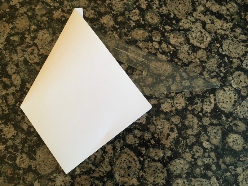Dun papier, ik gebruikte 80 grams wit A4-papier, een driehoek met een hoek van 60º, een schaar