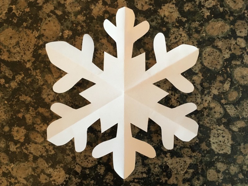- Vouw open en bekijk het resultaat. Heb je twee of zes stukjes papier? Dan wees het midden van de zeshoek niet naar beneden toen je de V ging knippen.
