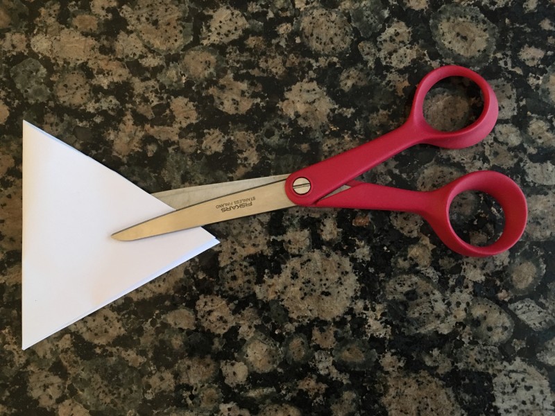 - Knip je frietzakje tot een gelijkzijdige driehoek.